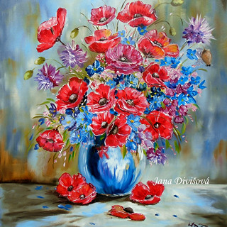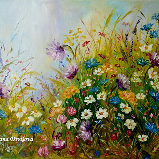 Téma jejích obrazů je rozmanité ,ale všechny spojuje právě technika malby - olejem. Velkou pozornost věnuje přírodě , krajinám, květinám i zvířatům.