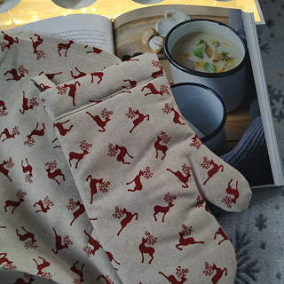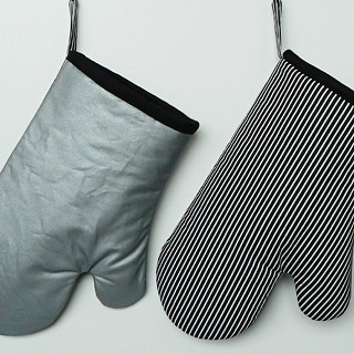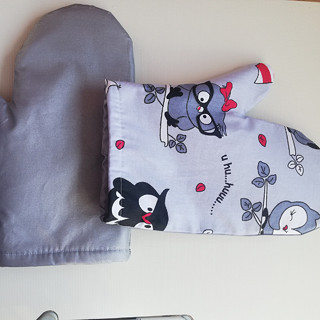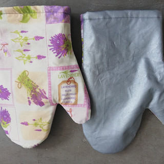 Pohledová strana chňapek je z bavlněné látky,předem vyprané už se nesrazí pracovní strana je ze speciální látky potažené dvěmi vrstvami hliníku.