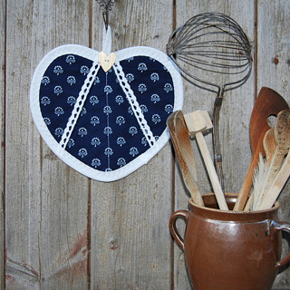 Kuchyňská chňapka ve tvaru srdce. Má ouško pro zavěšení, výborně se drží, kvalitně prošitá. Rozměr: cca 22 x 23 cm.