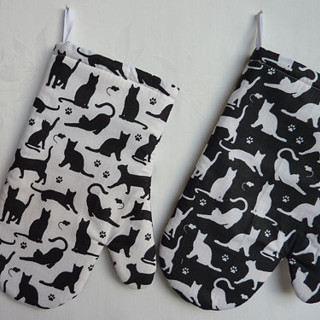 Kuchyňské chňapky s poutkem a magnetem,malý pomocník při vaření nebo pečení. Chňapky jsou ušité z pevné bavlny, vatelínu, černo bílé podšívky