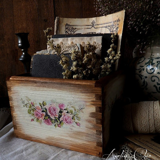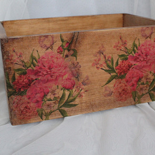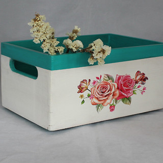 Úložný box z masivu s růžemi. Bedýnka se hodí na drůzné domácí drobnosti, knihy, notesy, kuchařky.