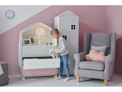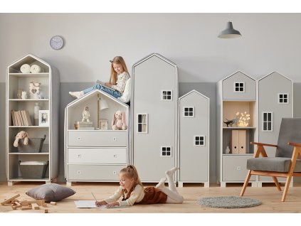 Domečkové skříně a komody v severském stylu. Jemné pastelové barvy, hravé tvary a extra bytelnost pro každodenní zátěž v dětských pokojích. Na tenhle nábytek se klidně i leze. Unese až 120 kg.