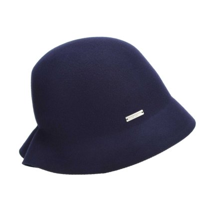 Tento jednoduchý klobouk od značky Seeberger svým zaobleným tvarem a asymetrickou krempou připomíná 20. léta. Hlava a krempa jsou vyrobeny z vysoce kvalitní vlněné plsti