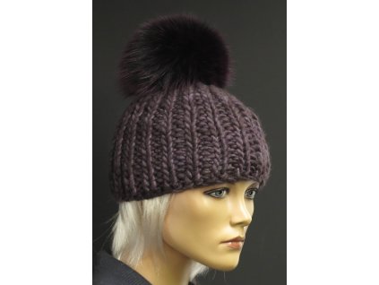 Luxusní pletená čepice s kožešinovou bambulí R Jet 304 šedá