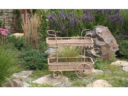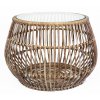 Velký kulatý konferenční stůl z tradičního ratanu (tyčovina) v oblíbeném kolonialním designu se sklem s přesahem. Na spodní straně stolu je úložná plocha pro časopisy. Použitý materiál je ratan v přírodním provedení, v barvě světlého medu se světlejším nápletem. Stůl je výškou vhodný k posezení na kávu k nižšímu sedu...