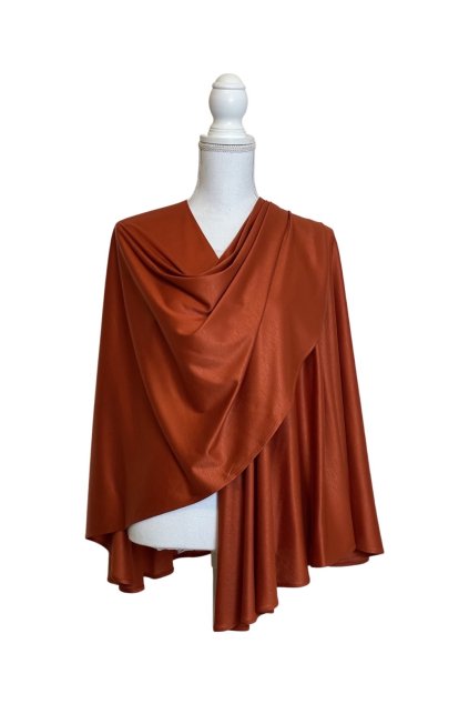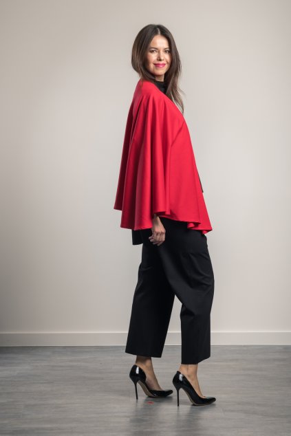 Velmi příjemný, lehký a přitom hřejivý pléd s předním úchytem. Má tmavě červený kožený lem. Lze nosit i přehozený přes rameno. Nahradí sako i kabát a přitom lze vrstvit.