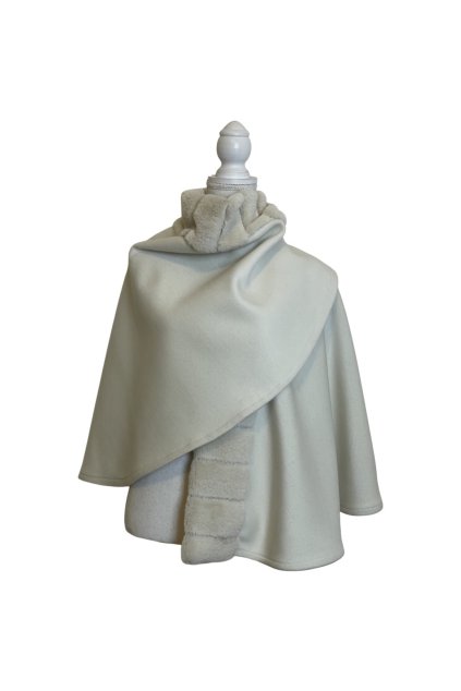 Velmi elegantní zimní kašmírový pléd s umělou kožešinou, který zcela nahradí zimní kabát. Zvednutý límec u krku pro zachumlání. Zapínání na patent.