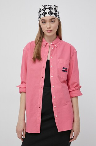 Bavlněné tričko Tommy Jeans dámská, růžová barva, relaxed, s klasickým límcem