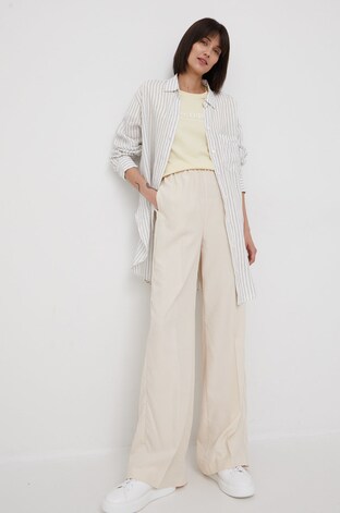 Kalhoty Sisley dámské, béžová barva, jednoduché, high waist