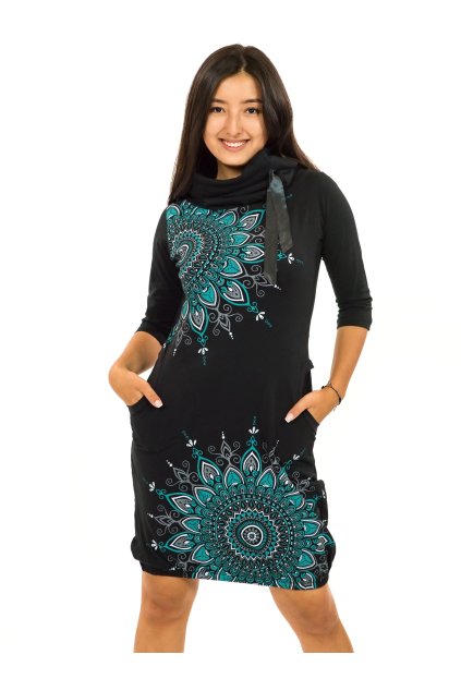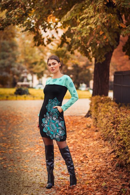 Šaty s dlouhým rukávem Kirpa - černá s tyrkysovou a béžovou