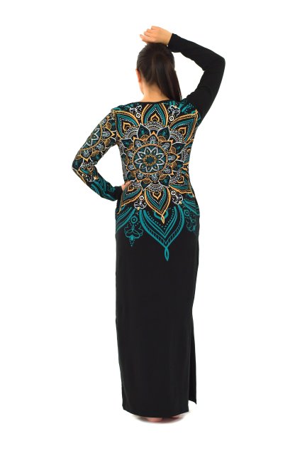 Balonové šaty s dlouhým rukávem Aruba - černá s tyrkysovou