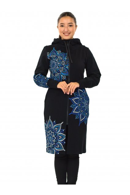 Prodloužená mikina na zip s kapucí Isa - černá s modrou
