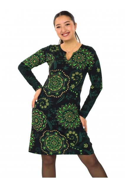Balonové šaty s dlouhým rukávem Aruba - černá se zelenou
